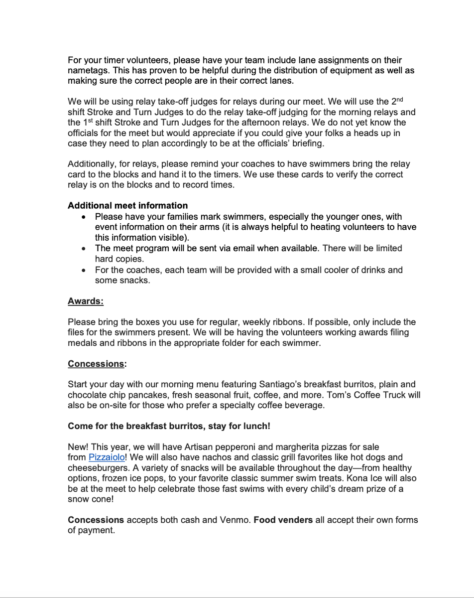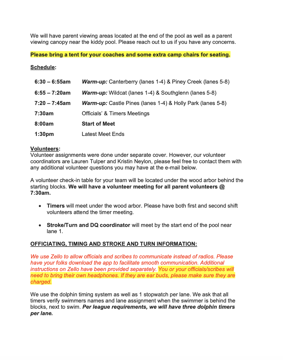 Please read the attached information about parking, volunteering, food and where to set up tents!